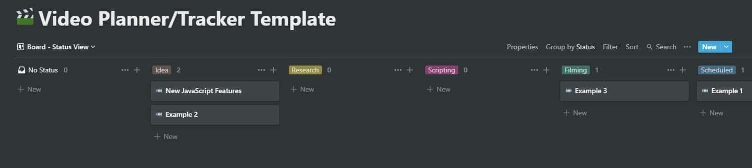 I have my content planner and my course planner. Then a video planner/tracker template. This template is what my other trackers are based on. It looks a lot like a spreadsheet. But it is basically a database. And unlike spreadsheets, it is much more flexible. You can actually look at them in different views, such as Kanban view and calendar view.